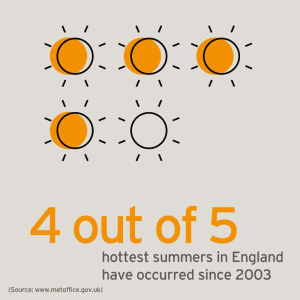 External shading fitted to the outside of buildings such as venetians and awnings are widely used in warmer countries, acting as a shield to stop the heat entering the building. With rising summer temperatures in the UK, external shading would be effective for areas exposed to direct sunlight.