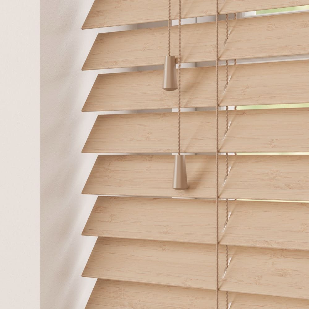 Cordia Bamboo Wooden Venetian Blind is a brown natural material that features a distinctive grain pattern. Due to being a natural material, there may be a degree of variation in the shading and grain n each blind.