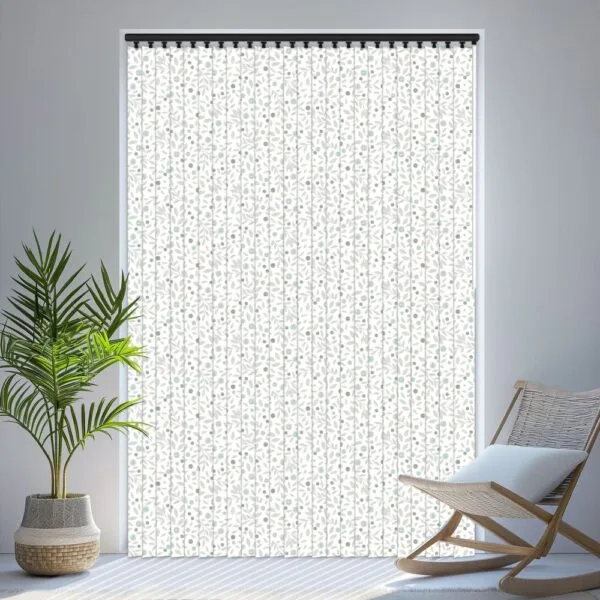 Cotton Flower Mineral Replacement Slat has delicate flowers and foliage in green and grey on a white background. A modern and delicate print to complement your décor.