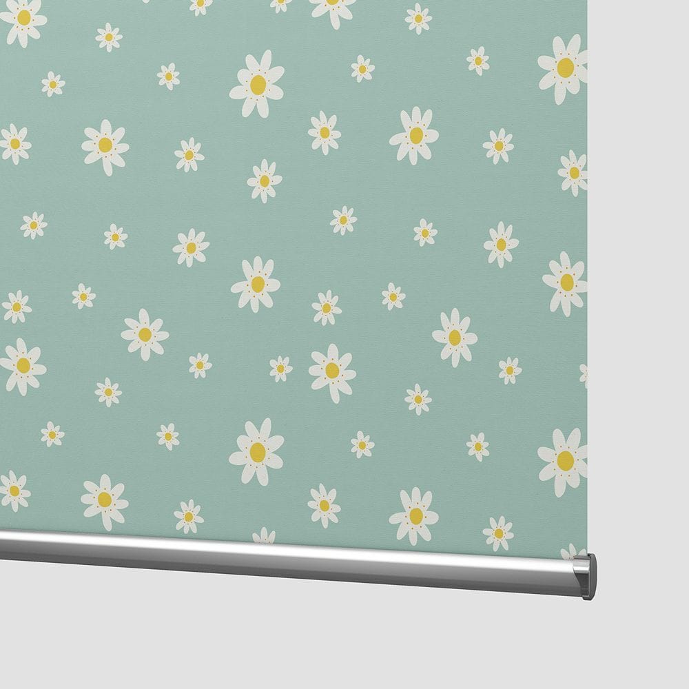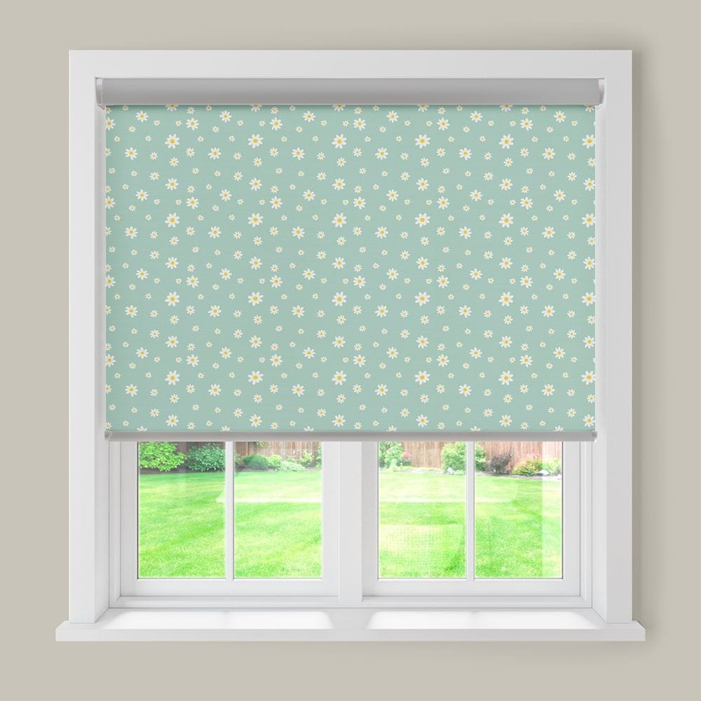 Elsie Sage Blackout Roller Blind has little white daisies on a green background. This blind features a delightful, brightly coloured pattern in a soft sage tone. It’s perfect for creating a calming yet engaging space for little ones, while the blackout lining delivers excellent light-blocking for better naps, deeper sleep, and privacy.