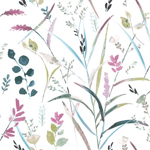 Flores Spring Roller Blind has wild blooms in pink, blue and green on a white background. Watercolour florals are popular as they create a serene atmosphere and are often used in bedrooms or living areas where a calming effect is desired. Inspired by a wild meadow in bloom, Flores is a watercolour design featuring a blend of muted and vibrant shades on a crisp white base. The design has proven to be popular giving Flores a well earned place in the collection.