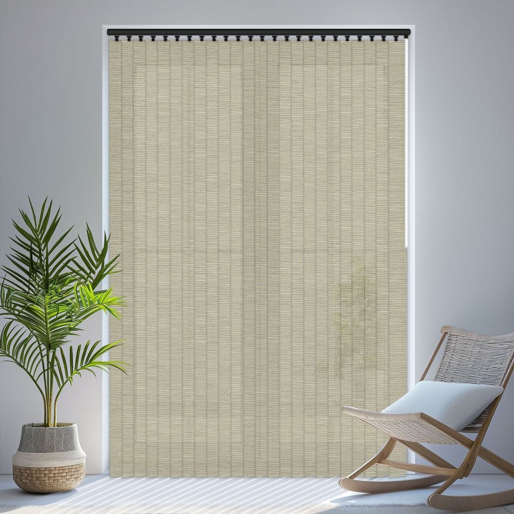 Hampton Picket Fence Vertical Blind is a small woven fabric with cream and beige tones. The textured weave offers a natural feel to the fabric, while the mix tones running through the thread create depth.