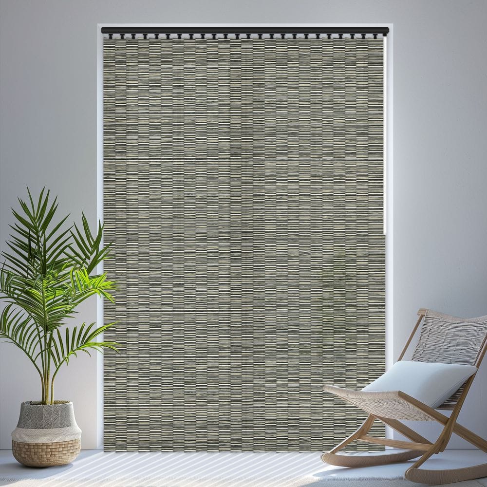 Monterey Marble Sheer Vertical blind has a sheer vertical textured pattern in warm beiges and black. This beautiful sheer fabric as a minimal design, trendy texture, while offering a hint privacy. Monterey is ideal for modern or contemporary settings where a combination of light control and stylish design is desired. Its semi-translucent nature allows it to soften the light in a room while the bold stripe pattern adds a touch of sophistication and elegance.