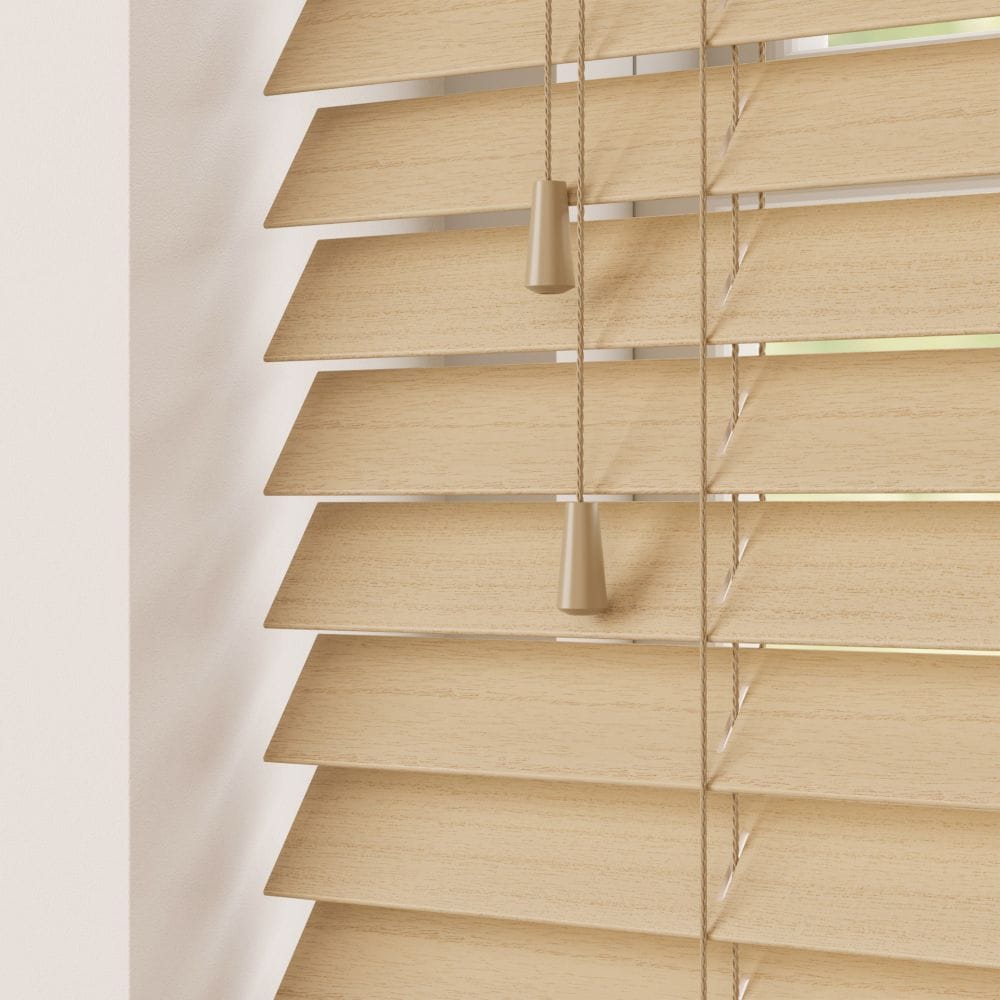 Narra Oak Wooden Venetian Blind in a warm oak colour. The natural soft grain of the wood is simply perfect for any room. A beautiful subtle colour that will take you back to nature and will leave you ready to bring the outdoors in. Our exclusive range of wooden Venetian blinds made from the finest basswood. The sheer elegance that can be created from a naturally beautiful product is made perfectly clear in this Collection. High quality wood Venetian blinds at an affordable price.