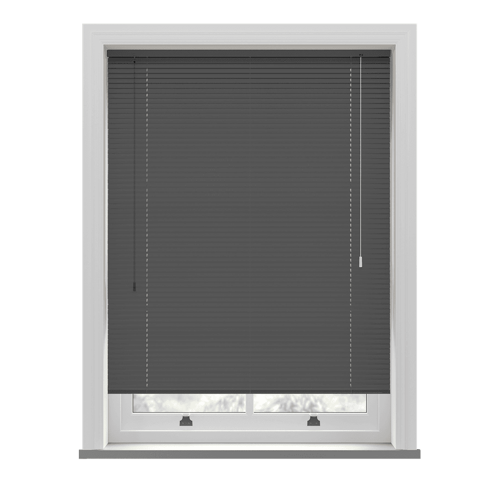 Orion Aluminium Venetian Blind has 25mm slats in dark grey. The rich, grey charcoal tone with subtle sheen creates a sleek, understated elegance that suits any contemporary interior.