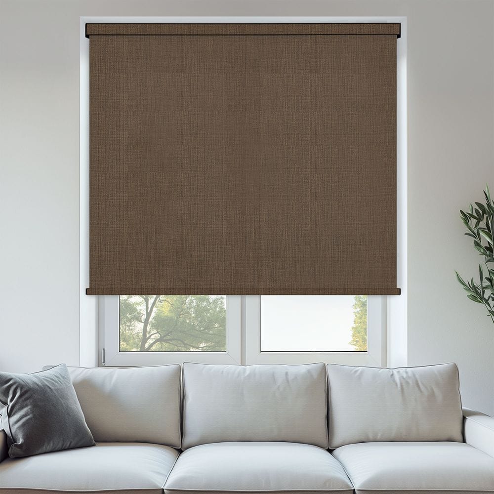 Oslo Jasper 1% Screen Roller Blind is a modern woven fabric in dark brown. Oslo is a super stylish 1% tonal woven screen that features lustrous yarns and offers aesthetic and functional benefits that align with current design preferences and trends.