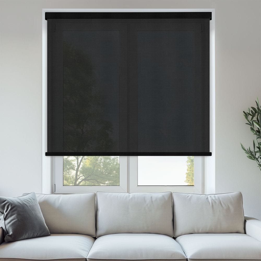 Perspective Black Screen Roller Blind is 3% openness in a small weaved screen fabric in black. Protect your privacy with this special fire retardant screen fabric by blocking our strong sunlight and glare without losing the view, perfect for offices. A beautiful effect is created with beige, a truly sensational look.