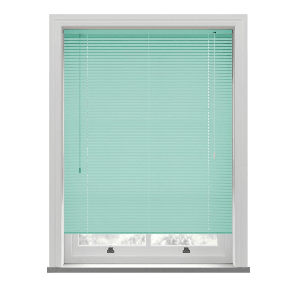 This Powder Green Aluminium Venetian blind has 25mm slats and is light green in colour. Breathe life into your room and dress your window with this beautiful, modern aluminium Venetian. A great combination with woods and other natural colours.