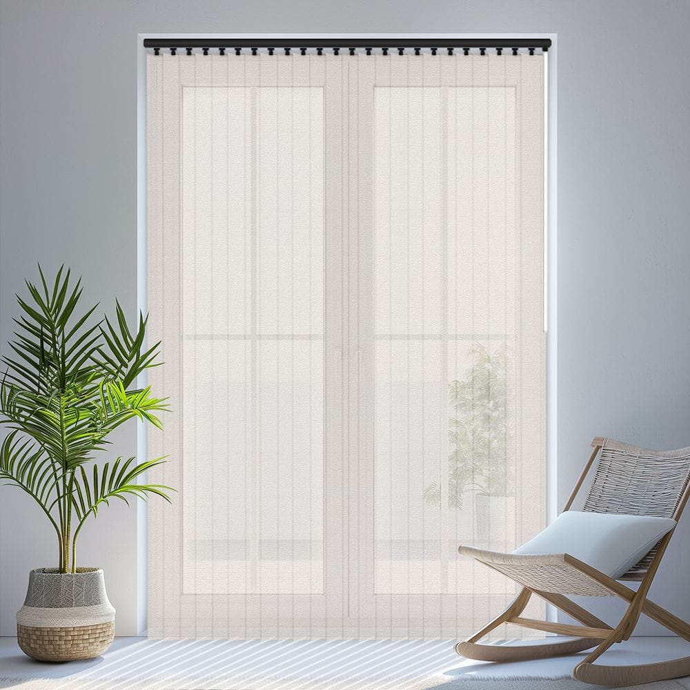 Ribble Beige Eco Vertical Blind has a stitched pattern in beige. A light filtering jacquard that features a unique flowing stitching detail that has an embroidered effect. The straightforward nature of simple patterns often has broader appeal, making these fabrics a safer choice for spaces.