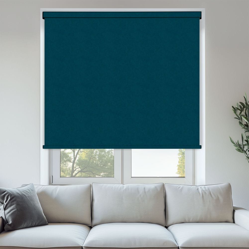 Windsor Teal Velvet Blackout Roller Blind is a soft, luxurious fabric in a deep blue / green colour. This gorgeously soft and tactile fabric has had a glow up! Windsor, a suede/velvet hybrid, is now available in 6 on-trend ‘jewel’ tones, enhanced with a colour-matched blackout backing. Jewel tones and velvets have become increasingly popular in interior design over the past few years, and this trend shows no sign of waning. Their appeal lies in their ability to transform spaces, bringing a sense of luxury, depth, and warmth.